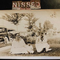 Authentieke fotokaart 2 vrouwen en een kind voor oude auto's