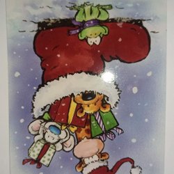 Kerstkaart Katt och Mus byter julklappar