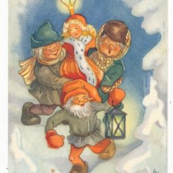 Britt-Lis Ongeschreven kerstkaart Kleine kaart Kerstman met lantaarn Trol draagt prinses KV 10