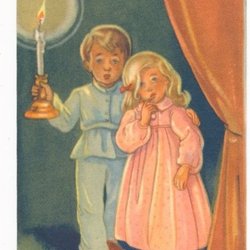 Britt-Lis Ongeschreven kerstkaart Kleine kaart Jongen en meisje bij Draperiewonder KV 9