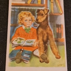 George. Meisje leest voor aan hond. ONGESCHREVEN