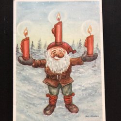 Kerstkaarten Tomtar skidor JAC. EDGREN