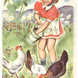Moeder en dochter Prachtige wenskaart in kleur verzonden in 1916