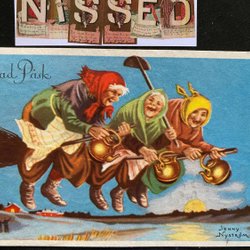 4 kleinformaat kerst-/nieuwjaarskaarten gesigneerd B-LE (BRITT-LIS ERLANDSSON) jaren 40-50