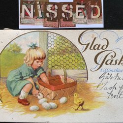 4 kleinformaat paaskaarten paasbedels etc. bord CURT NYSTRÖM jaren 50-70