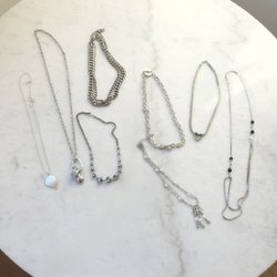 Sieradenpartij met zilverkleurige kettingen