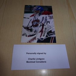 Echte handtekening Charlie Lindgren Montreal Canadiens
