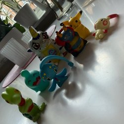 - Klassiska figurer som Pikachu och Charizard