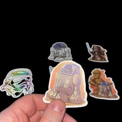 - Stickers som representerar populärkultur, inklusive film, tv och litteratur.