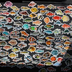 - Musikrelaterade klistermärken, allt från klassisk rock till modern pop.