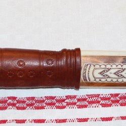 ISAK MATTI JUUSO, SAMISK KNIV MINITAYR MED VACKER DEKOR.