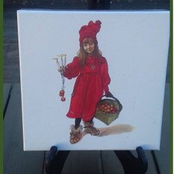Carl Larsson kartonnen doos met portret van Brita als Idun elfenmeisje met mandje met appels