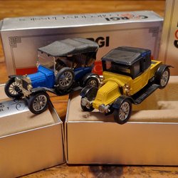 Begagnade Corgi bilar i olika skick