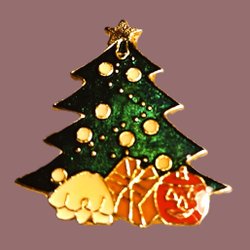 PIN -KERSTBOOM MET LICHTJES & CADEAUS - VINTAGE MET BUTTERFLY CLUTCH