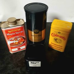 4st blikken dozen waaronder een kleine Colman's blik