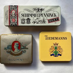Drie blikken dozen voor tabak.