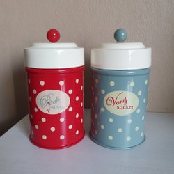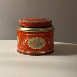 Bakpoeder, vanillesuiker, blikken doos, Burkar från Strömshaga