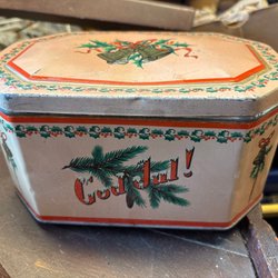 Blikken trommel met deksel - Koffieblik - "Löfbergs Lila" - Blikken trommel - Kerstmotief - Kerstman