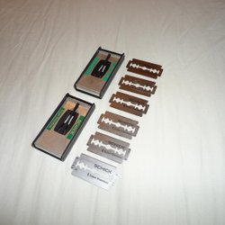 "National" scheermesdispenser met ongeopende verpakking, dubbelzijdige scheermesjes.