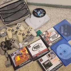 PlayStation 1 med spel och tillbehör