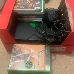 Xbox med 10 spel och handkontroller