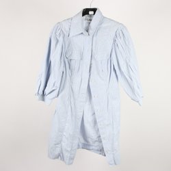 Jurk, Ganni, gestreept, wit, blauw, pofmouwen, maat 34
