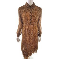 Skjortklänning XL Lång ärm Paljetter Leopardmönster Midi