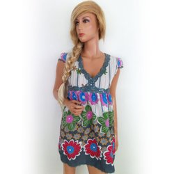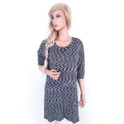 SPY ZONE EXCHANGE Gebreide Jurk voor Dames Kanten Borduurwerk Grijs S 3/4 mouw V-hals
