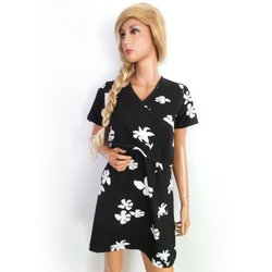 PAOLA MARIA Mini-jurk voor Dames Zwart 38 Korte mouw Katoen V-hals