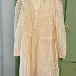 BEWERKTE beige jurk, maat 34