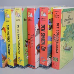 6st Tintin VHS - Hajsjön , Den Svarta Ön , Mystiska Stjärnan - Svenskt tal