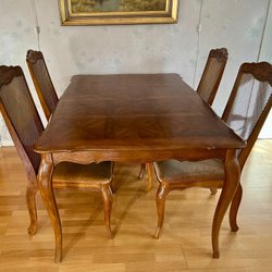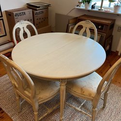 Denna sektion på Tradera är fylld med både begagnade och oanvända matsalsmöbler i varierande ålder och kondition, från vardagligt använda köksbord till matstolar i absolut nyskick. Utbudet kan inkludera såväl antika köksmöbler som matbord i modernare design och köksstolar i retrostil. Oavsett om man är på jakt efter ett rustikt matsalsbord i massivt trä eller söker efter smidiga barstolar till köksön finns det goda möjligheter att upptäcka något som passar hos oss. Bland annonserna går det att finna allt från enstaka köksstolar, matsalsbord och fina skänkar till smidiga set med flera matchande stolar och kompletta matgrupper. Vissa köksmöbler auktioneras ut till högstbjudande, medan andra säljs direkt till fast pris.