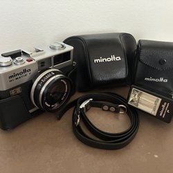 Minolta SRT 101 met lenzen en accessoires
