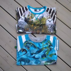 Twee shirts met uilen en hagedissen maat 110/116 van Molo