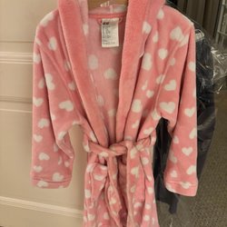 H&M roze badjas met witte hartjes, maat 122/128