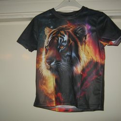 VRS groen shirt met lange mouwen met Cool leeuwenprint maat 122-128 cm (6-8 jaar).