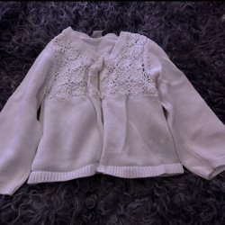 Stickad tröja med glitterhjärta, storlek 116.