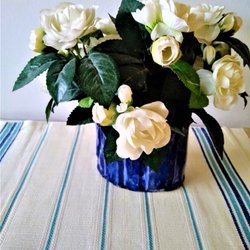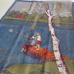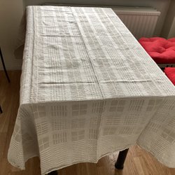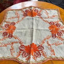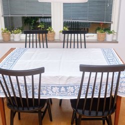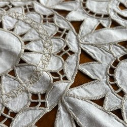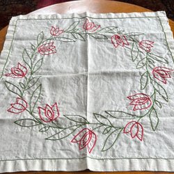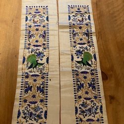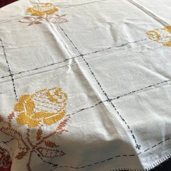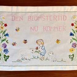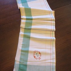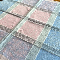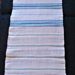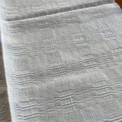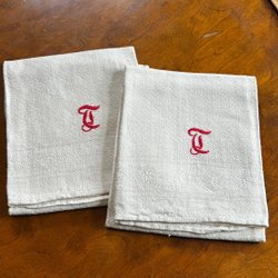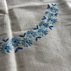 Ongebruikt en in ongebleekt linnen - paar handdoek in ongebleekt linnen, geborduurd in blauwe tinten