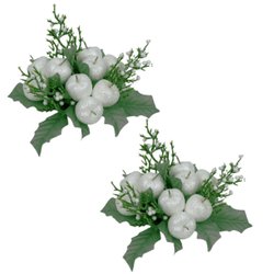 Lichtmanchetten 2-pack met witte bessen en groene bladeren voor kaarsen