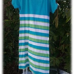 Lingon & Blueberry nachtjapon gestreept in turquoise wit s 140 korte mouwen Mooie staat