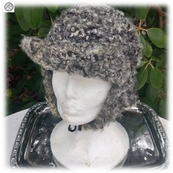 Mooie echte schapenvachtmuts met klep en oorwarmers die onder de kin te knopen zijn