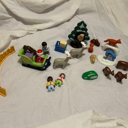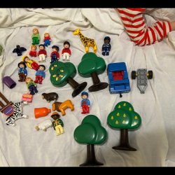 Grote collectie Playmobil 123 4 bomen 12 mensen 6 dieren 1 auto en aanhanger
