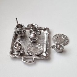 Poppenkastservies / miniatuurservies (17 stuks) in keramiek. Voor poppenhuizen/kijkgaatjes