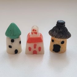 3 kleine huisjes. Miniaturen/beeldjes voor de poppenkast, kijkkast etc