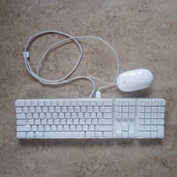 Ouder Apple toetsenbord en muis met snoer
