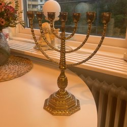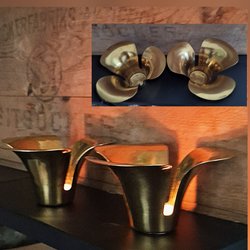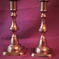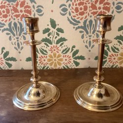 Een paar oudere kandelaars van messing.