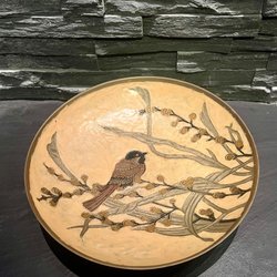 Decoratieve schaal in messing en email, met vogel en takken. Hand Arbeit Zeldzaam!