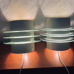 Wandlampen van IKEA 1960-70 tal met glazen panelen.
