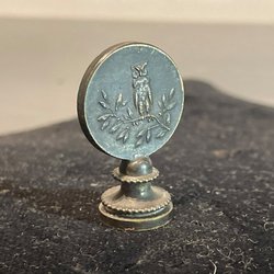 Antieke mini bronzen zegel Uil en Minerva - Romeinse mythologie 19e eeuw VS