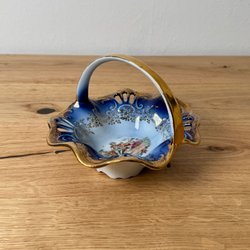 Buitenvoering van porselein met beeldjes. Gouden randen, diameter 14 cm, hoogte 12 cm, zeer goed